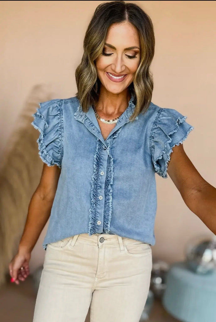 - This ruffled top creates a fluttery, romantic look for modern ladies