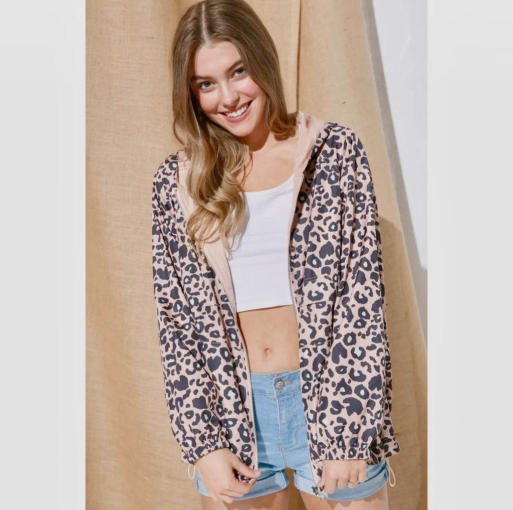 - Zip up reversible windbreaker hoodie with contrast print fabric