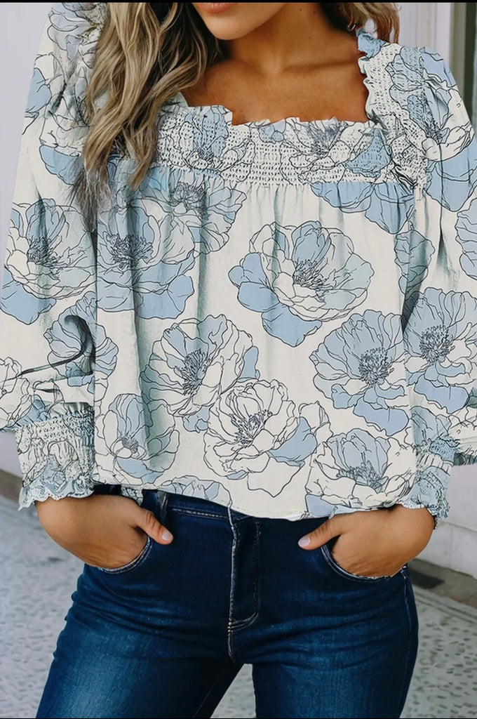 Sky Blue Floral Print Top
